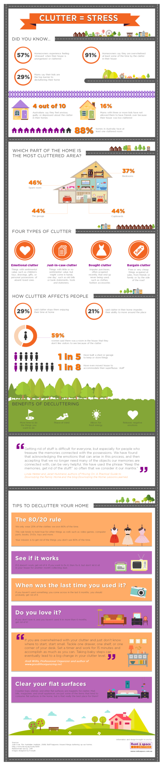 There are many benefits to decluttering your home and we have outlined 5 easy tips to help you get started. Check out our infographic below on the four types of clutter, why you should declutter and tips on how to get rid of your clutter.